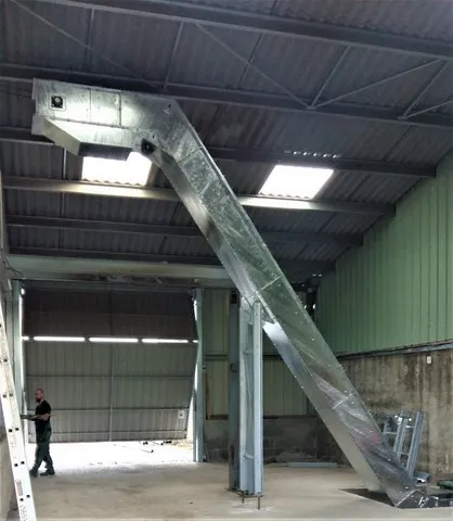 Convoyeur à racleur, ces équipements sont destinés à la manutention de produits solides en vrac et pulvérulents. Les produits manutentionnables vont des grains aux digestats, boues de stations d'épuration.