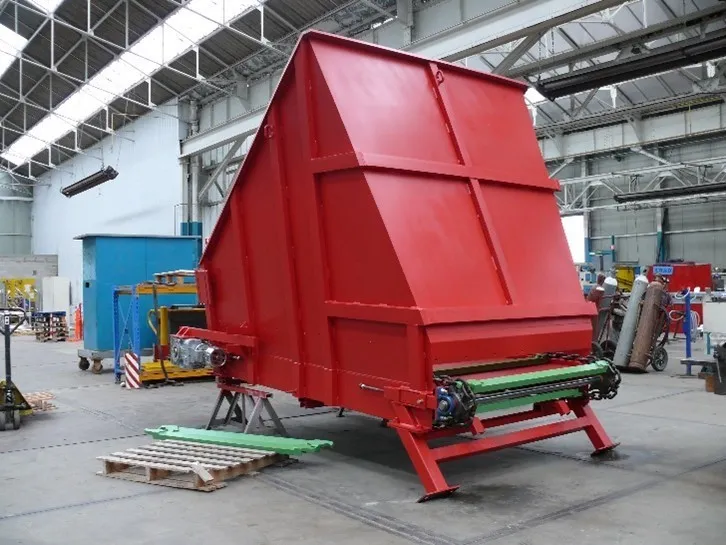 La trémie a une capacité en fonction des besoins. Elle a pour fonction l’alimentation des lignes de fruits et légumes. Elle peut être équipée d’un démêleur en option et est le plus souvent inclinée. Un déterreur est la plupart du temps ajouté.